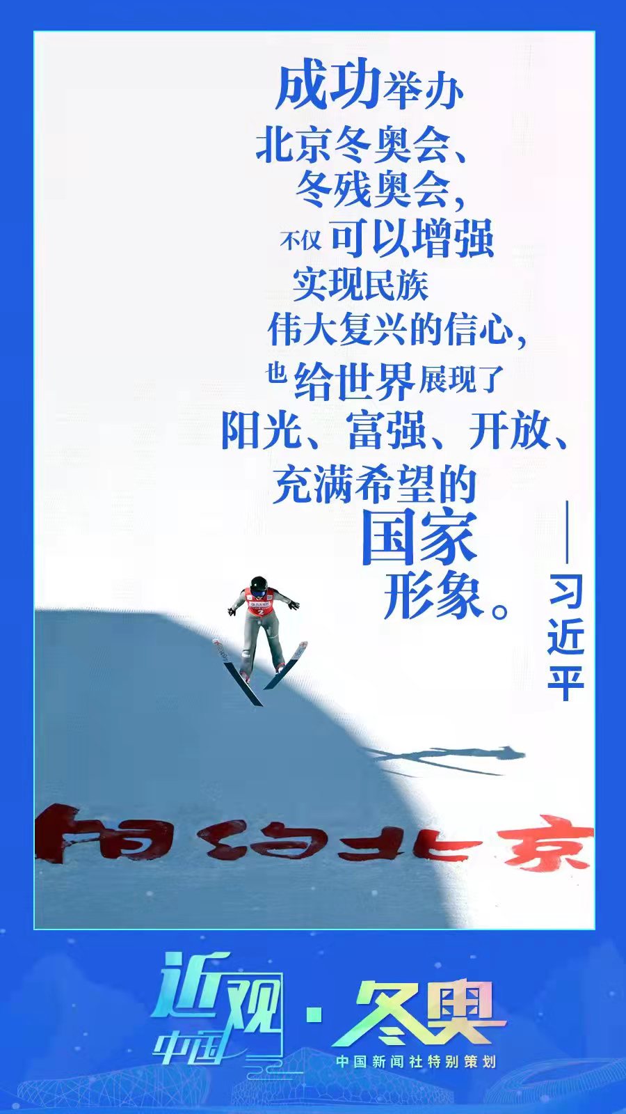 “成功举办北京冬奥会、冬残奥会,不仅可以增强实现民族伟大复兴的信心,也给世界展现了阳光、富强、开放、充满希望的国家形象。”今年伊始,习近平在考察北京冬奥筹备工作时有感而发,“历史会镌刻下这一笔,世界将对中国道路有全新的认识。”
