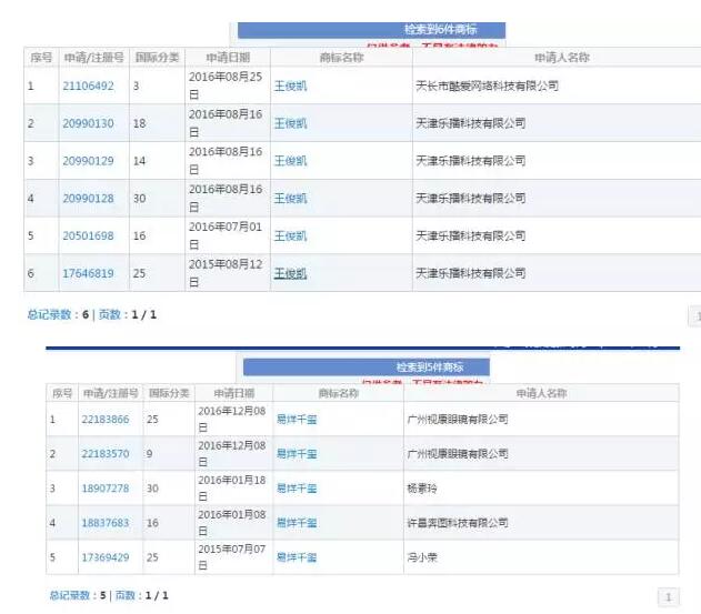 名字被注册商标也就算了,在类别上也是千奇百怪,有食品的,服装的,婴儿用品的,明星看到后怕是会欲哭无泪。