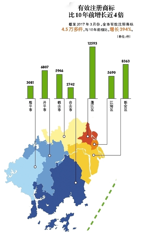 商标是企业参与市场竞争的“第一入口”,是企业核心竞争力的基本元素之一,也是唱响好品牌的载体。近年来,江门市委市政府对商标品牌建设高度重视,我市商标品牌战略发展实现了十年大跨越。