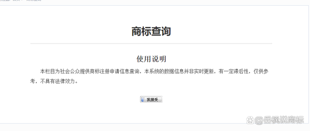 第三部。同意商标查询使用说明。请看商标查询使用说明页面,使用人必须同意商标查询使用说明才可以进入下一个页面,就是默认同意商标信息存在滞后性。查询结果不一定完全准确,此信息也表明了注册商标不能100%申请成功的原因之一。
