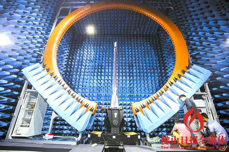 盛路通信研发人员在对微波暗室进行测试。/佛山日报记者陈浩森摄(资料图片)