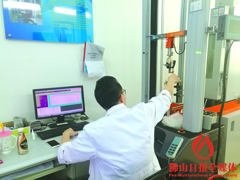 天安新材力学强度实验室的工作人员正在对材料进行测试。/佛山日报记者谢炜君摄(资料图片)