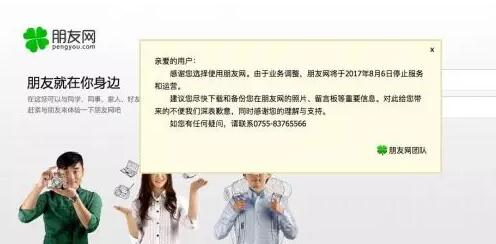【朋友网8月6日起停止服务和运营 上线8年半曾红极一时】