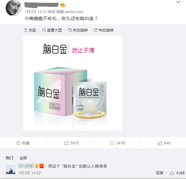 众所周知,脑白金畅销送礼市场20年,品牌在中国家喻户晓。你可能没喝过脑白金,但是你一定听过那句:“今年过节不收礼,收礼还收脑白金。”的广告词。看过老爷爷老奶奶手拉手一起跳的舞。而近日,有一95后创业者看中这个IP的知名度,欲抢注“脑白金”为自己正在创业的安全套产品的商标,还忍不住在网络上启动了预热营销,不知道会不会成功。