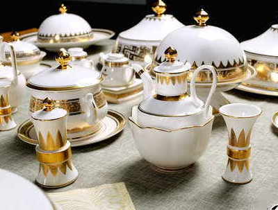 许斌介绍说,首先是理念创新,摒弃“拼盘式配套”的传统方式,纹饰设计上彻底改变了用标志物照片、风景名胜照平贴、平铺的一般做法,经过反复权衡比较,最终采用了以良渚古玉纹饰和青铜礼器纹饰为主要元素的青铜纹饰为统一图案纹饰,既蕴涵了中华文化中天人合一、阴阳平衡的深厚文明理念,又彰显出泱泱气度和大国风范。其次,在器型方面,除了个别平盘以外,整套的大器和立件全部为重新设计,充分参考杭州独特的地域文化元素,量身定做。