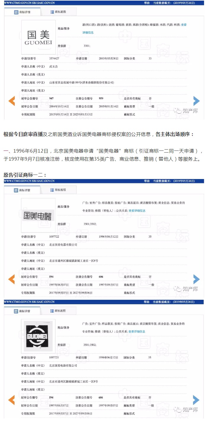 2019年5月28日14点,北京国美电器有限公司(以下简称国美电器)诉国家知识产权局、第三人武玉杰“国美”商标无效宣告行政诉讼案,在北京知识产权法庭第十九法庭公开开庭审理;