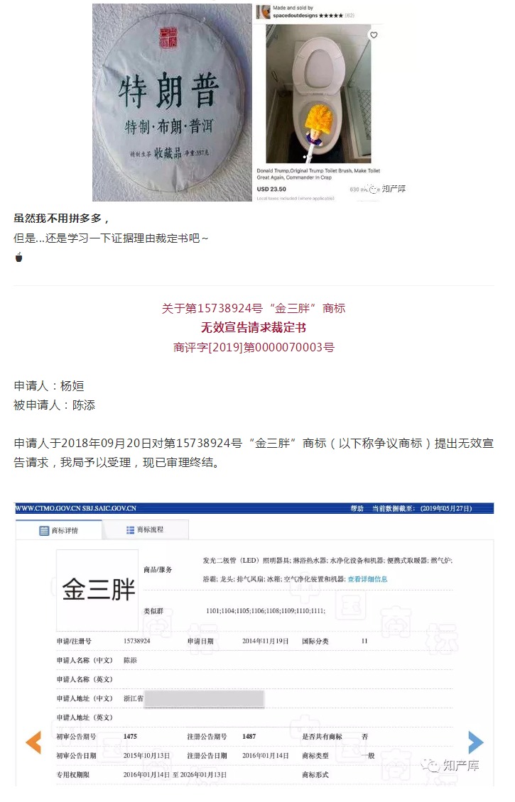 一个“金三胖 ”,认定有不良影响,无效了 ;