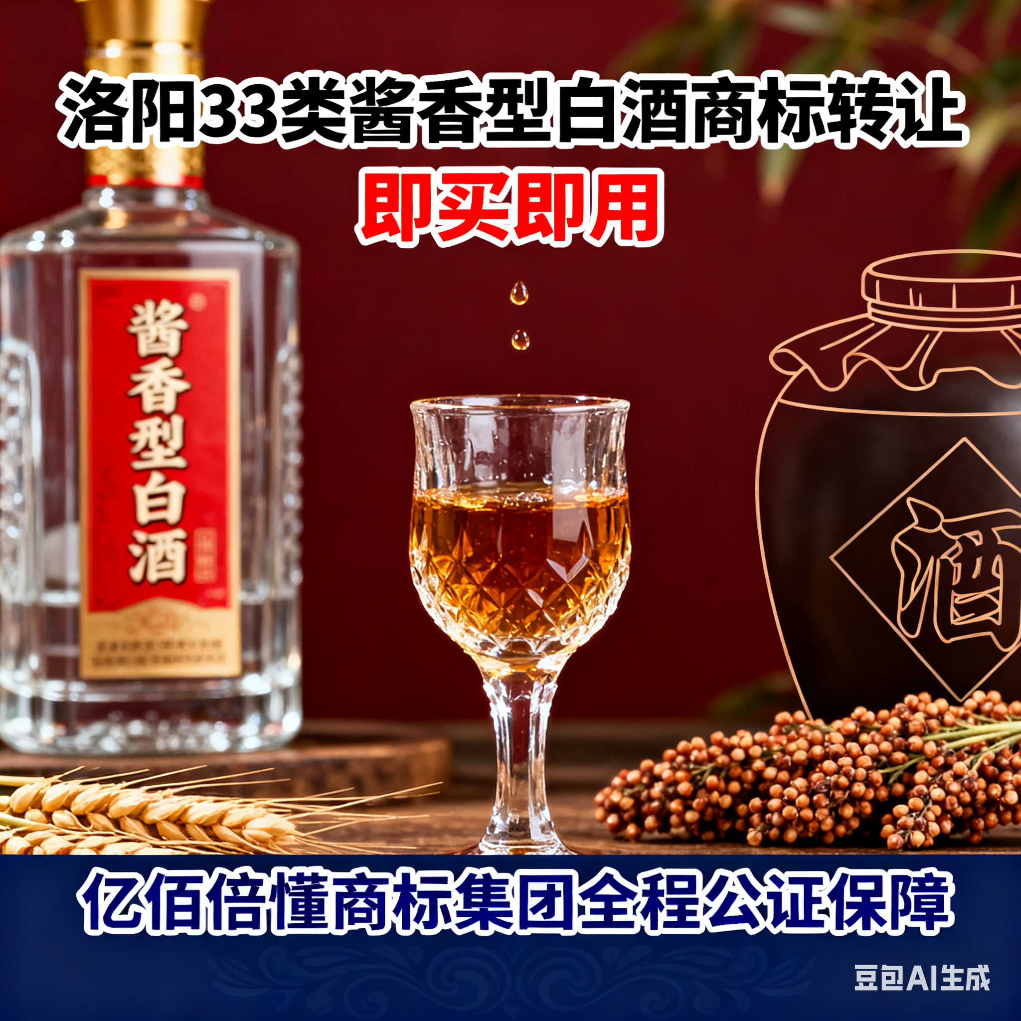 洛阳33类白酒商标转让即买即用,亿佰倍懂商标集团全程公证保障!