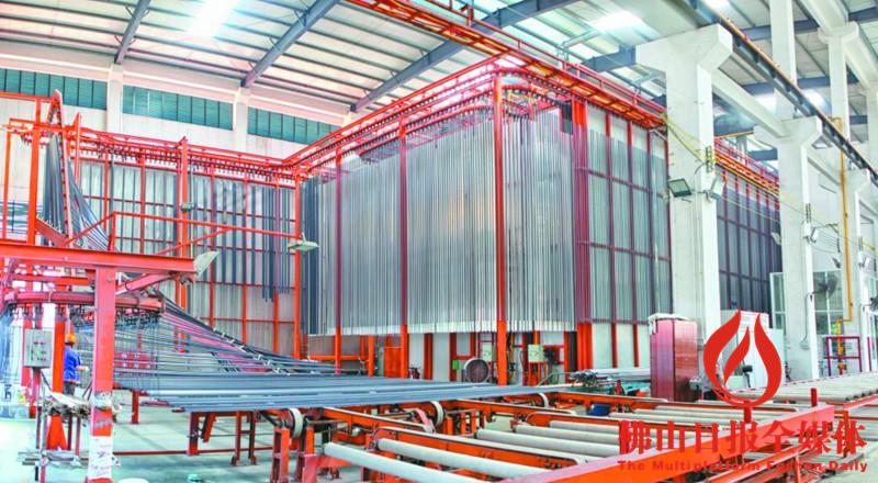 伟业铝厂大型全自动立式喷涂生产线保证产品质量。/佛山日报记者王春艳(资料图片)