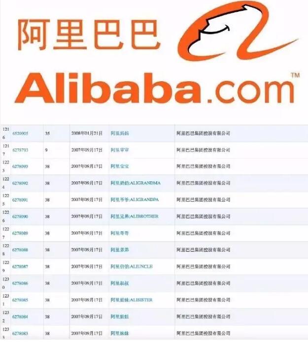 阿里巴巴注册的商标是把阿里的亲戚都注册了一通: