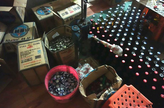 市场价20元一箱的廉价啤酒就这样摇身一变,变成驰名品牌的啤酒,紧接着由“搬运工”运往位于我市周边的一个仓库,以每箱36至40元的价钱销售出去,从而获得丰厚利润。据嫌疑人交代,他们已经卖了5万多箱的假冒品牌啤酒。而这些啤酒最终会流向街头的小饭店、宵夜档等饮食店,消费者稍不留神,可能就会喝上这种假冒名牌啤酒。