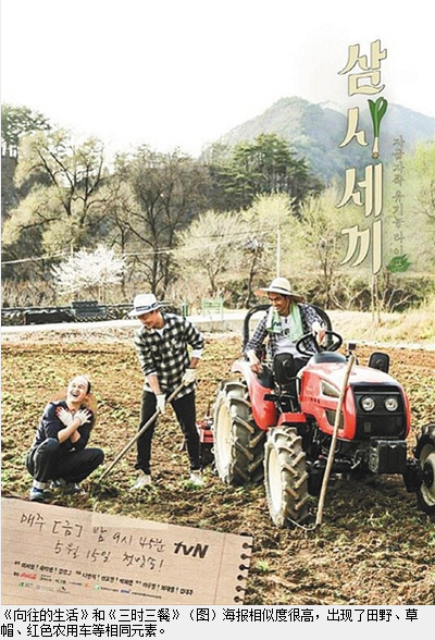 几经周折,综艺节目《向往的生活》换平台、定档又移档。不大顺利的播出之路,好歹终于引起了关注——以及争议。褒贬的原因都很直接,一个是以节目参与明星自给自足的乡村田园为题材,被不少观众誉为当下综艺节目中的一股“清流”;而另一个就不那么让栏目组高兴了——《向往的生活》从录制阶段起,就开始面临网友“抄袭韩国综艺节目《三时三餐》”的指责,被认为包括节目创意、环境选择、规则及模式设置、节目配乐甚至参与人设都与《三时三餐》有许多相似之处,被不少网民对此公开表示反感和抵制,甚至希望韩方起诉,以打击综艺抄袭的不正之风。