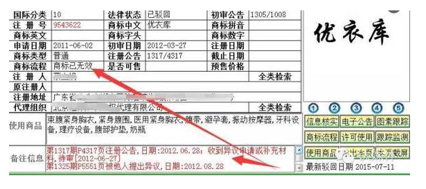 优衣库:知名快时尚品牌优衣库也曾被注册为避孕套商标,这不是在去年“优衣库“事件大火的时候,而是在2011年。不过,就算那么早,也已被成功疑义掉。