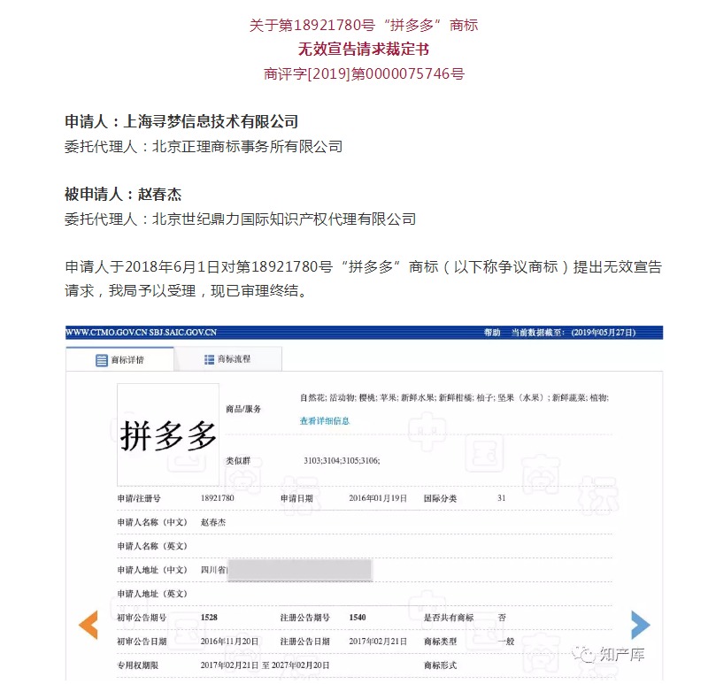 一个“拼多多 ”,认定无效理由不成立,维持了 ;