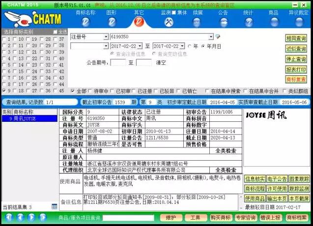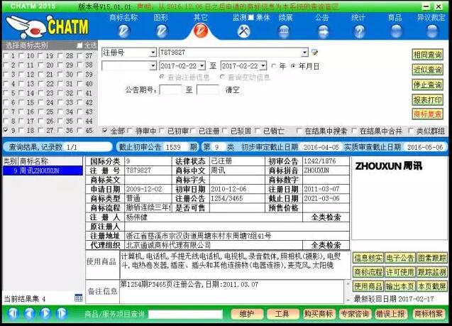 一是第6199350号“周讯JOYSE”商标,2007年8月注册,2010年4月获准注册;二是第7879827号“周讯ZHOUXUN”商标,2009年12月申请,2011年3月获准注册,这两件商标都是指定在第9类商品上。